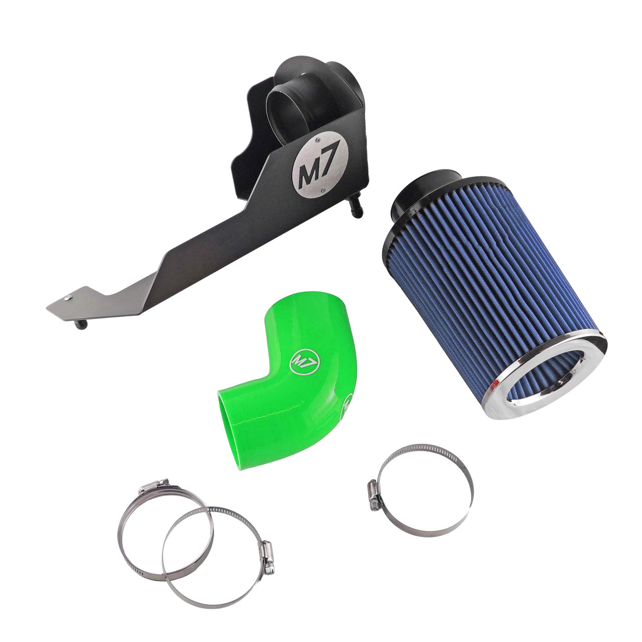 The M7 Speed MAXX-FLO (TM) fresh air system is our newest offering for all Generation 2 MINI. It fits all R55 through R59 MINIs with N14 & N18 Turbocharged engines and the R60 Countryman and R61 Paceman. Our system directly replaces the restrictive stock air box with a precision fabricated aluminum frame that securely connects into the factory mounting points for simple installation. The M7 design eliminates all the problems found on other aftermarket systems. Included with this MAXX-FLO(TM) kit ia an 8" long x 6" dia BLUE pleated washable filter and a GREEN 100% silicone 4 ply custom connection elbow with all new clamps.