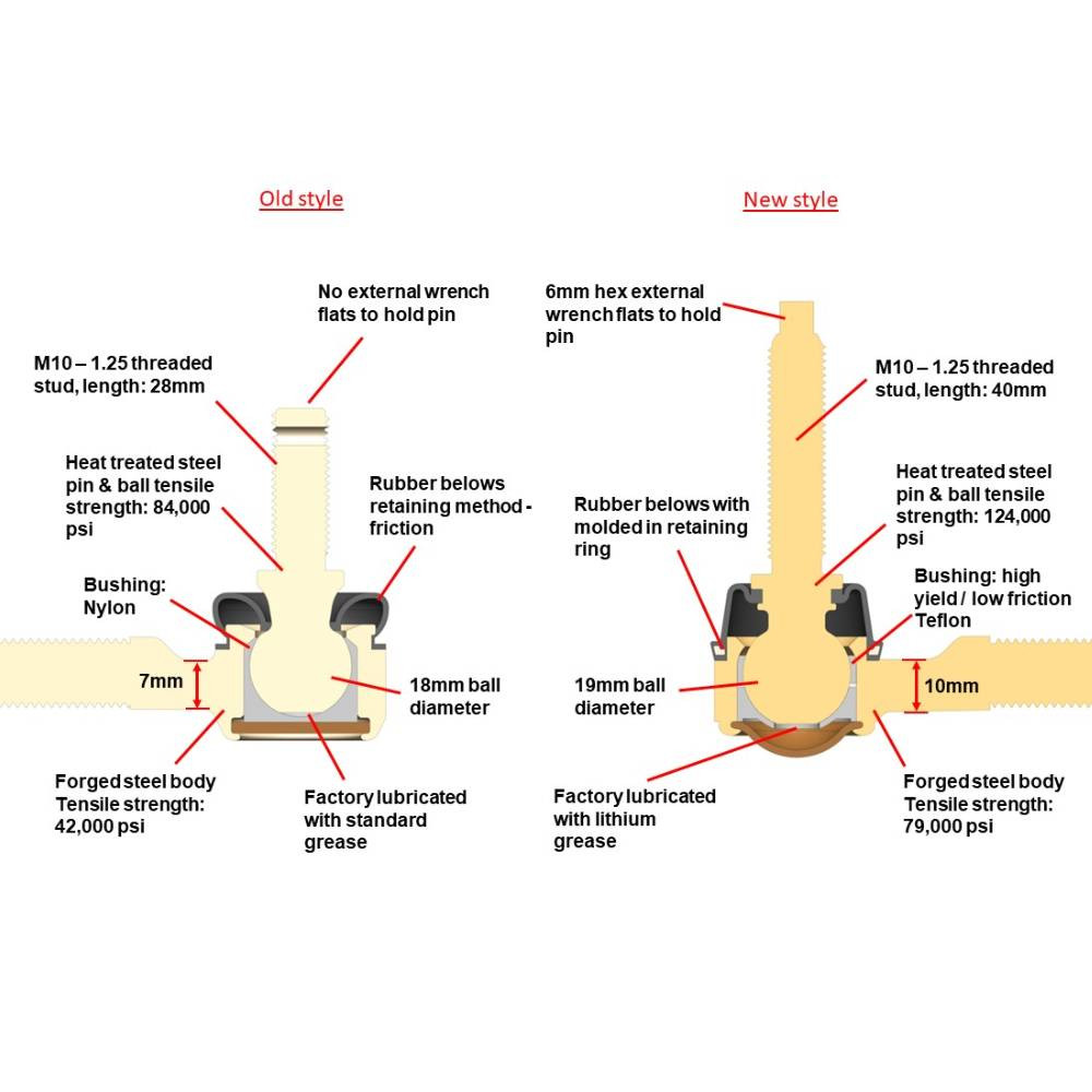 • Permanently lubricated and sealed OEM style ball stud & socket design. No Junk Rod Ends (heim joints) here