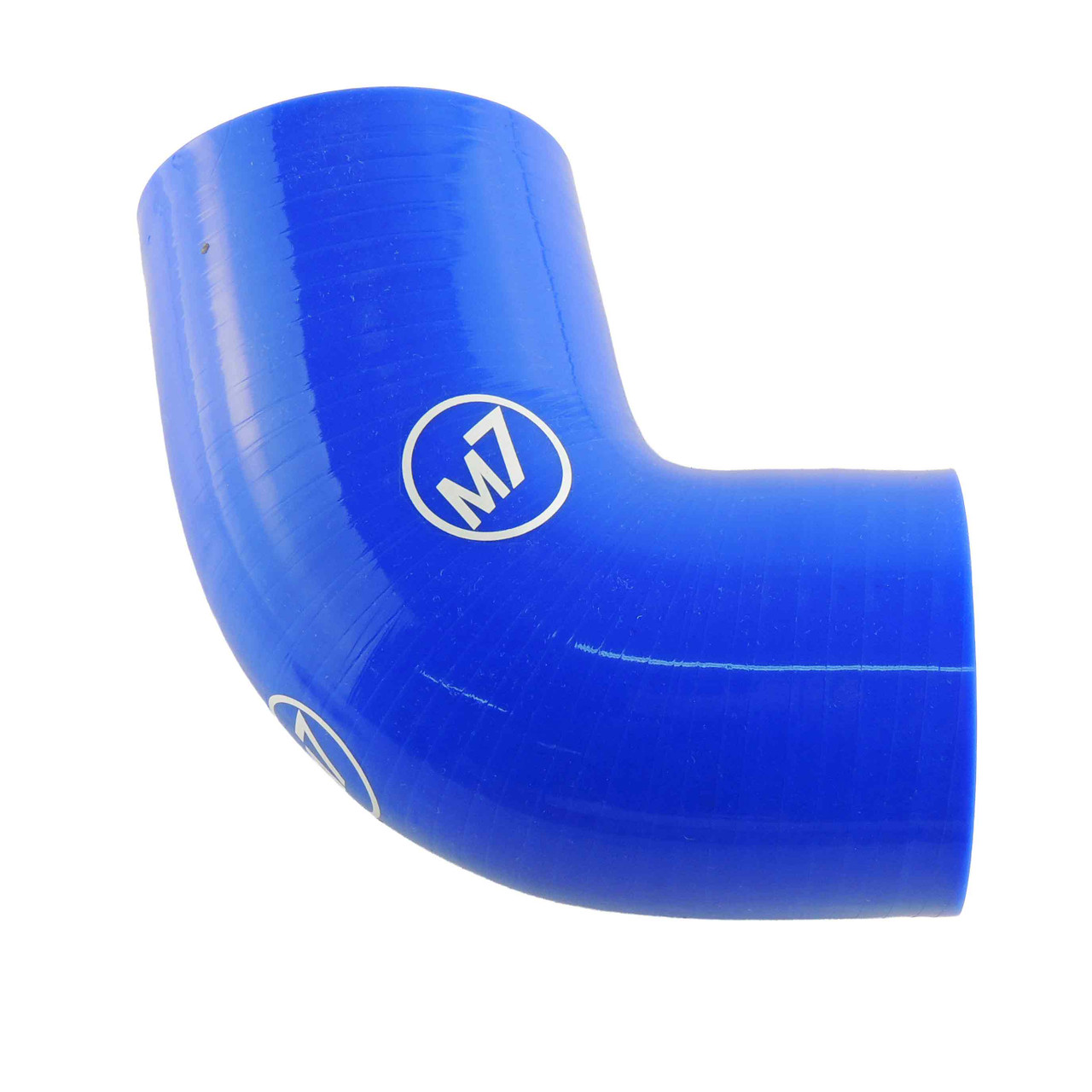 This elbow designed to be used with M7 Speed's MAXX-FLO Intake System. It measures 3" on the housing end and 2.75" at the MAF sensor end. The bend is 80 degrees for a perfect fit to the OE MINI intake hose system. It comes complete with two proper sized stainless steel clamps. Manufactured from high quality fainer reinforced silicone and has the M7 LOGO marked in white.. Available in four colors. BLACK, RED, BLUE and GREEN
