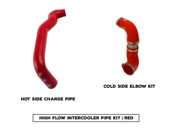 This kit combines the M7 Speed COLD SIDE Intercooler Elbow Kit with its very popular HOT SIDE Charge pipe in the color RED. Together this intercooler pipe kit provides the highest flow and lowest pressure drop from the turbo to the throttle body. More Air = More Power! Made from high quality four (4) ply fabric reinforced 100% silicone material. In addition to better power and throttle response this kit adds a handsome finished under hood appearance to your pride and joy and eliminates high boost failures seen when using the OE parts. And finally the M7 kit eliminates the OE hote side muffler and cold side sound chamber increasing throttle response and greater mid-range to top-end power.